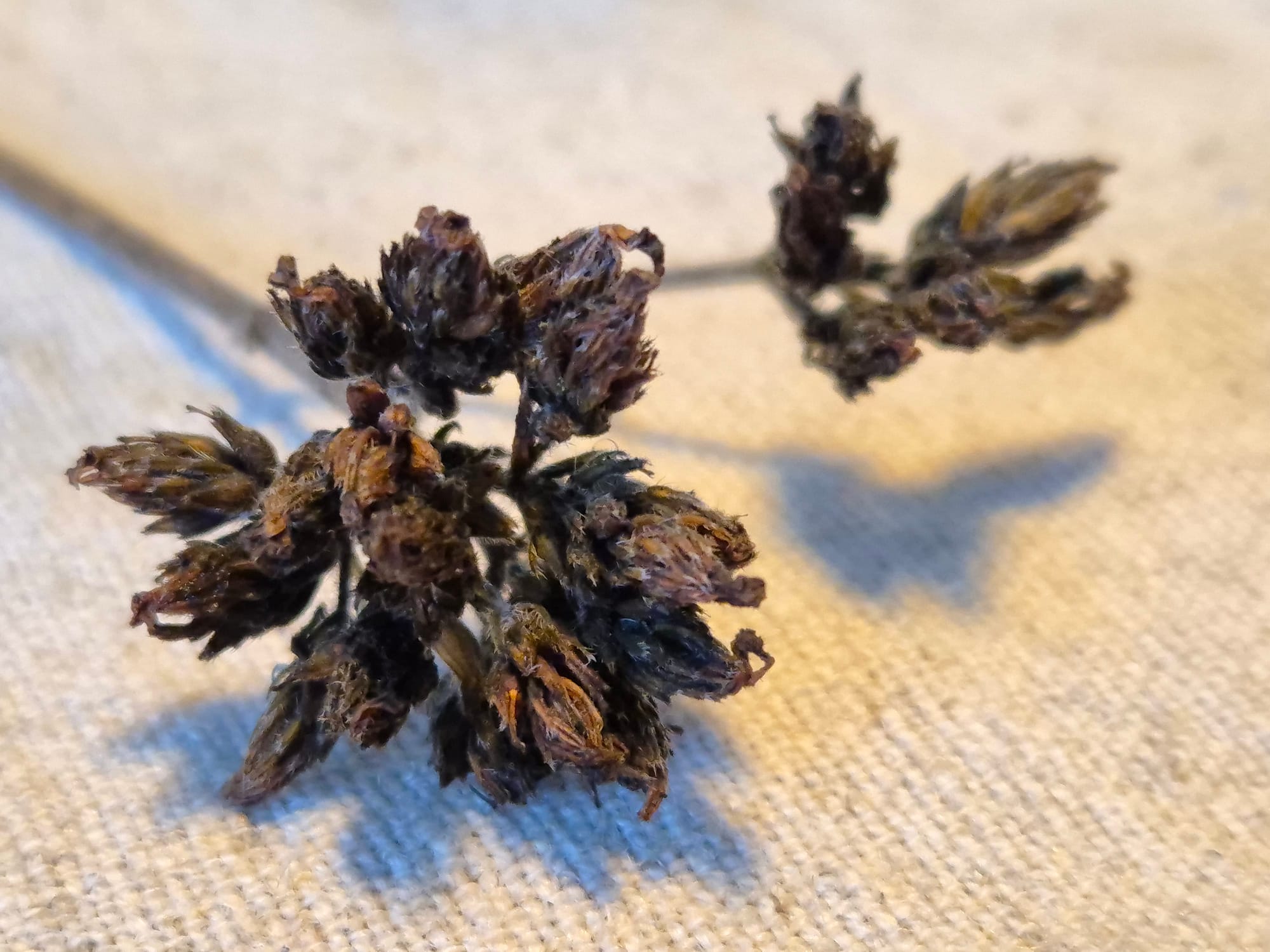 Frøstandene lar jeg ligge å tørke på et slett klede, men du kan også bruke et papir eller noe annet som samler opp frøene når du rister i frøstanden.